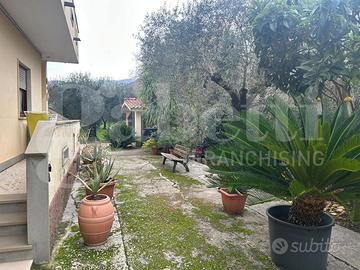 Sermoneta Via delle Querce - Casa indipendente di 320 mq su due livelli divisa in due situazioni abitative con ingresso indipendente. Le soluzioni si trovano al piano terra rialzato e al piano primo. Il Piano Terra si trova nello stato originario ed è così diviso: ingresso, soggiorno, cucina abitabile, disimpegno, bagno, due camere da letto; il Piano Primo si trova in un buono stato di conservazione ed è così composto: ingresso nell'ampio soggiorno, cucina abitabile, disimpegno, bagno, camera da letto e camera matrimoniale con bagno e accesso al balcone. Giardino circostante e terreno di 5000 mq con 70 piante di ulivo. Gazebo con cucina e forno. Cantina al piano seminterrato e magazzino di ca 40 mq al piano terra. Impianto di allarme perimetrale.