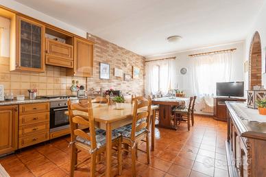 L'immobile si sviluppa su due livelli e offre una superficie commerciale di circa 330 mq, perfetta per accogliere anche famiglie numerose. Gli ambienti interni sono ampi e funzionali: la zona giorno si apre su un salotto e una cucina in open space, che creano un'atmosfera conviviale e luminosa. La zona notte è composta da cinque camere da letto e due bagni, mentre una comoda lavanderia, una cantina, un garage e una tettoia esterna completano la proprietà, garantendo praticità e ampi spazi accessori.