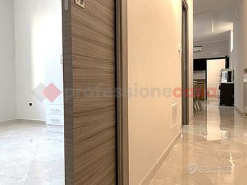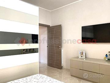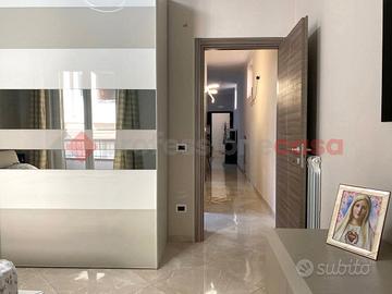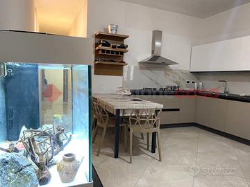 In zona ben collegata, a pochi passi dai servizi principali soluzione Semi indipendente disposta su un unico livello con terrazzo di copertura e ampio garage. La soluzione totalmente rinnovata e in ottime condizioni come da foto, si sviluppa al piano rialzato con ingresso indipendente , dove troviamo una cucina living con sala e termo camino, disimpegno, bagno con finestra, cameretta , e camera da letto con terrazzino. Scala interna che conduce al piano superiore dove troviamo una terrazza, lastrico di copertura di pari metratura. Piano seminterrato ampio garage/legnaia con piccolo deposito di 90 mq. Rifiniture: Porta blindata, impianto di allarme, infissi in vetrocamera con persiane motorizzate e zanzariere ovunque, pavimento in ceramica e gress porcellanto, impianti certificati. pronta per essere abitata Per info ed appuntamento