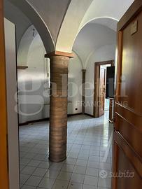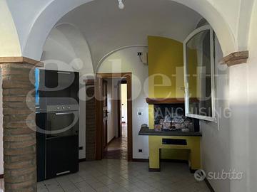 PT: ampia sala con belle colonne, cucina abitabile arredata, bagno, vano lavanderia / deposito ed ampissimo vano con BEL CAMINO.