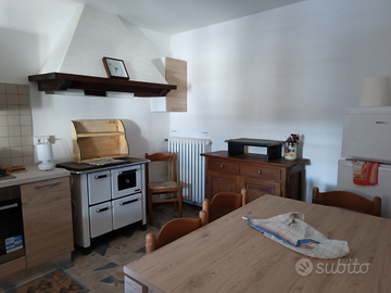 Vendesi fabbricato ad uso abitazione con fabbricato ex uso stalla e fienile con terreno di proprietà adiacente. L'immobile è di ampia metratura composto da ampia cucina, sala di grandi dimensioni, 5 camere, due bagni di cui uno ristrutturato recentemente, grande dispensa. Sul davanti è presente terrazza con tettoia e altra terrazza a lato strada nella parte superiore. Al primo piano è presente balcone Possiede due ampi garage/deposito.
