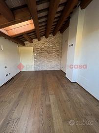 Al piano terra si apre un ampio soggiorno doppio con cucina a vista, pensato per un vivere moderno e conviviale, con affacci che valorizzano la luce naturale. Al piano superiore si sviluppa la zona notte, composta da due camere da letto e un bagno. Il parquet presente in tutta la casa conferisce calore e continuità estetica agli spazi, esaltando l'eleganza architettonica dell'immobile.