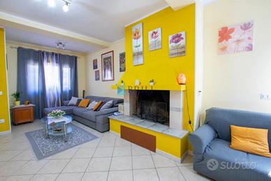 Al piano terra soggiorno/pranzo con camino a legna che che rende l'ambiente accogliente ed elegante, cucina separata e bagno di servizio. Il giardino, privato e ben curato, ospita una veranda coperta, ideale per pranzi all'aperto e momenti di relax.