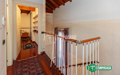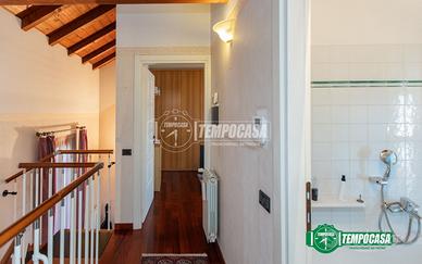 Salendo al piano superiore, una mansarda alta e luminosa accoglie la zona notte, interamente rifinita con elegante pavimentazione in parquet che conferisce calore e raffinatezza agli ambienti.