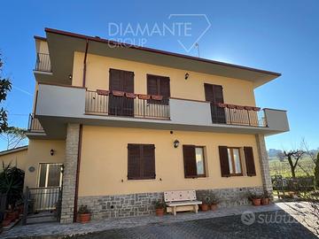 - Piano terra: Appartamento ristrutturato nel 2018 con ingresso indipendente di 80 mq circa composto da soggiorno con termo-camino, cucina abitabile, disimpegno, bagno con doccia, ripostiglio, camera matrimoniale con bagno interno, camera singola e lavanderia;
