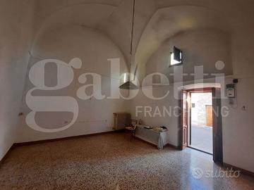 Nel cuore di Taurisano, nei pressi di Corso Leonardo Da Vinci, zona residenziale e commerciale, proponiamo abitazione indipendente di ampia metratura (245 mq circa) disposta su 2 livelli e con accesso da due strade. Al piano interrato troviamo una caratteristica cantina composta da 4 vani a stella tra loro comunicanti, aventi accesso da Via Giuseppe Garibaldi ed in ottime condizioni strutturali. Le volte a stella sono completamente stonacate con i caratteristici conci di tufo completamente a vista. Al piano terra l'abitazione si compone di 4 vani a stella molto ampi, aventi un'altezza fino alla chiave di volta tale da consentire la realizzazione di comodi soppalchi, ed un doppio accesso da Via Giuseppe Garibaldi. Completano l'immobile 4 vani a volta piana e 2 bagni. Da Via II Giugno si accede al box auto, corredato da un comodo ripostiglio. Uno spazio esterno mattonato unisce il box all'abitazione. Inoltre, nella sopracitata parte esterna della proprietà troviamo un comodo ed ampio vano deposito ed ulteriore bagno. Due comode rampe di scala conducono sul lastrico solare, dove vi è il vano caldaia. L'immobile è appunto dotato di impianto di riscaldamento, climatizzazione ed è allacciato a tutti i servizi pubblici essenziali. La particolare distribuzione planimetrica, l'accesso indipendente da 2 strade ed il doppio accesso da Via Giuseppe Garibaldi permette molteplici destinazioni d'uso, quali unica grande abitazione di tipo storico, due abitazioni adiacenti, struttura ricettiva di tipo storico, vista la particolare conformazione delle volte a stella.