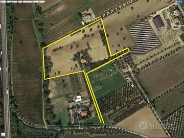 Casa indipendente di 250 mq. su due livelli circondata dal giardino di 1.000 mq. + strada privata, e quasi 28.000 mq. di terreno agricolo con 100 alberi di olivo più altri alberi da frutta. Vicino al fossato ci sono due pozzi con pompe elettriche e un lago con la motopompa a gasolio e relativi tubi di metallo e pvc.