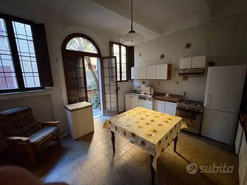 Rif:Piazza Ariostea (127440158) - Adiacente la meravigliosa Piazza Ariostea libera Casa indipendente del 1700' disposta su due livelli cosi' composta: al piano terra ingresso con ampio androne, grande cucina abitabile, soggiorno con camino, al piano primo due ampie camere da letto matrimoniali, uno camera singola, disimpegno/studio e bagno cieco. Esternamente, ma collegata internamente con la zona notte attraverso un lungo corridoio, bella dependance rifinita, disposta su due livelli composta da un vano al piano terra ad uso studio/libreria con ripostiglio e cantina indipendente, al piano primo ampia camera da letto e bagno cieco. Piccolo scoperto esclusivo, riscaldamento autonomo. - Classe: G - IPE: 175.00 kWh/mq anno