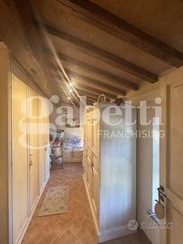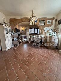 Nel caratteristico borgo di Chientina, nel Comune di Terricciola, terra del vino e meta turistica dei cittadini europei, proponiamo un tipico terratetto indipendente, in stile Toscano rifinito con travi e travicelli e mattoncini a vista completamente ristrutturato. L' accesso é al piano terra che si apre sulla luminosa e ampia taverna con lavanderia e bagno finestrato con doccia e prosegue nella loggia che si affaccia al giardino con vista panoramica sul verde delle colline. Al primo piano troviamo doppio salone con caminetto, cucina abitabile con terrazza vivibile e bagno finestrato con doccia idromassaggio. Una comoda scala in legno accompagna al sottotetto ad oggi adibito a studio. Al secondo piano si sviluppa la zona notte con : camera matrimoniale con terrazza, due camerette e bagno con vasca finestrato. L'immobile é ben rifinito, le finestre con infissi in pvc doppi vetri e le persiane in pvc.