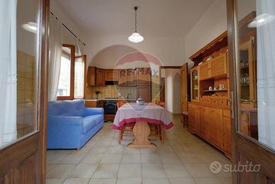 La casa è parzialmente arredata, con una cucina abitabile dotata di camino che offre ampio spazio per cucinare e mangiare in famiglia.