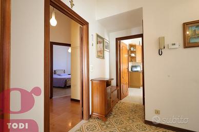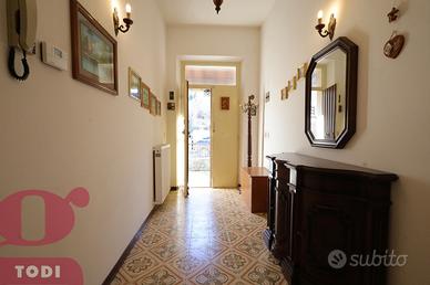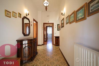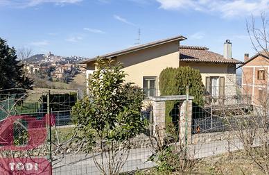 ABITAZIONE INDIPENDENTE con vista panoramica in zona residenziale di Todi. L'immobile, situato a Cappuccini, zona molto servita e comoda, gode di una splendida vista sul centro storico della città, con la Consolazione ed il Campanile di San Fortunato entrambi ben visibili da uno dei due TERRAZZI della proprietà. Una casa già ABITABILE, con tutti i servizi a portata di mano, pronta per soddisfare le esigenze di una famiglia che cerca uno spazio tranquillo tutto suo e pronta per essere ripensata ed arredata a proprio piacimento. Al piano terra, dove si trova l'ingresso principale, si sviluppa la zona abitativa, che si estende per un totale di 103 mq. Questa è composta dal corridoio di ingresso, dall'ampio e luminoso soggiorno con affaccio sul TERRAZZO, dalla cucina abitabile con salva cucina, poi ancora da un disimpegno, due ampie camere matrimoniali, di cui una sempre dotata di accesso al terrazzo, ed un bagno finestrato con doccia. Al piano primo è invece ubicata la SOFFITTA di 93 mq, alla quale si accede mediante una scala interna che parte dalla cucina. Al piano seminterrato troviamo due ampi e comodi GARAGE, un fondo, un ripostiglio e la cantina-legnaia, per un totale di ben 140 mq. Completa la proprietà lo spazio esterno con doppio ingresso carrabile. Dotato di POZZO, completamente recintato e diviso tra area pavimentata e GIARDINO: un ulteriore ampio sfogo esterno privato di circa 400 mq complessivi.