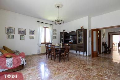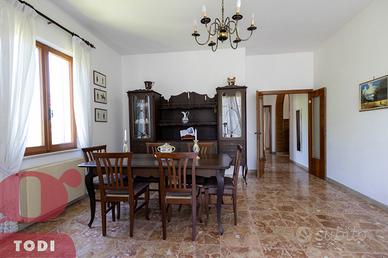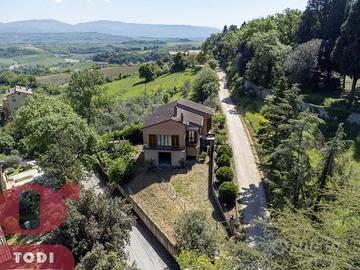 A pochi passi dal centro storico di Todi, proponiamo in vendita una CASA SINGOLA di circa 260 mq, con AMPIO SPAZIO ESTERNO di ca. 1000 mq, ideale per chi cerca indipendenza, comodità e tranquillità a breve distanza dai servizi. L'immobile si sviluppa su DUE LIVELLI: Al PIANO TERRA, su una superficie di 130 mq, si trovano degli ampi locali ad uso MAGAZZINO e GARAGE: attualmente adibiti a depositi, ma facilmente riconvertibili in spazi abitativi, laboratori o ambienti polifunzionali. Al PIANO PRIMO si sviluppa l'ABITAZIONE PRINCIPALE di 130 mq, luminosa e ben distribuita. L'ingresso apre su un ampio DISIMPEGNO, dal quale si accede a tutte le altre stanze della casa: la CUCINA con camino e balcone, l'ampio SOGGIORNO con angolo lettura e balcone, le TRE CAMERE da letto (la padronale con balcone, la seconda matrimoniale sempre con balcone, la singola), lo STUDIO e DUE ampi BAGNI entrambi finestrati, uno con doccia ed uno con vasca. Dal disimpegno è possibile accedere inoltre al SOTTOTETTO, ideale ripostiglio, tramite scala retrattile. Distaccato dall'abitazione troviamo un MAGAZZINO di 18 mq, perfetto come rimessa attrezzi, deposito agricolo o ricovero animali. L'intera proprietà è RECINTATA, con doppio accesso tramite CANCELLO CARRABILE ed INGRESSO PEDONALE. Lo spazio esterno, con alcune piante di olivo, si adatta ad uso GIARDINO offrendo comunque zone ottime per un orto. La POSIZIONE è impagabile: raggiungibili comodamente a piedi il centro di Todi e tutti i principali servizi (banche, farmacie, supermercati e fermata autobus). Inoltre, la stazione ferroviaria di Terni e l'aeroporto di Perugia si trovano a circa 45 km. Prima o seconda casa; per chi lavora in centro, periferia o fuori città: l'opportunità valida per le esigenze più disparate che un acquirente possa avere!