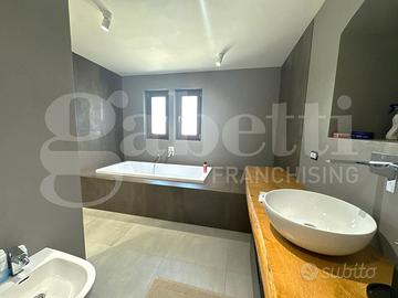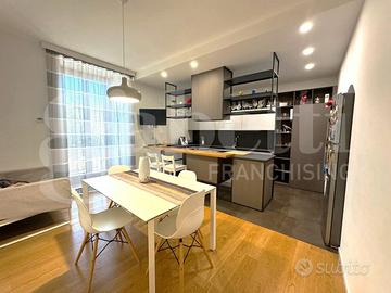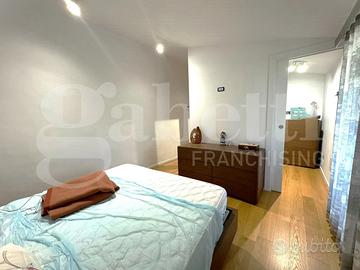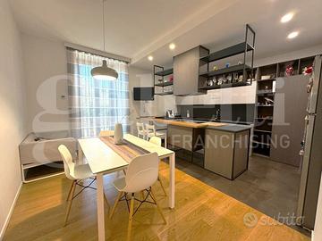 Le finiture dell'immobile includono pavimenti in parquet di alta qualità, riscaldamento a pavimento, sistema di raffrescamento, infissi in doppio vetrocamera e controsoffittatura con faretti in cucina per un'illuminazione moderna ed efficiente.