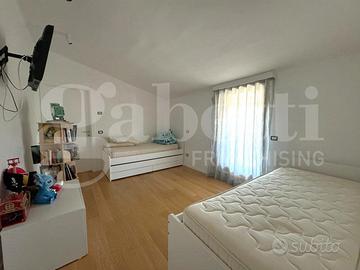 Al secondo piano si trova la zona notte con una camera matrimoniale dotata di cabina armadio, due camerette, bagno e comodo ripostiglio.