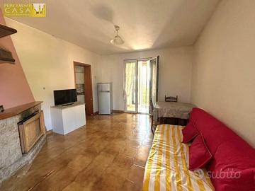 PIANO PRIMO: ci accoglie un ampio ingresso al quale si accede con comoda scalinata che conduce al soggiorno con camino, al cucinotto e all''accesso al terrazzo coperto con tettoia.