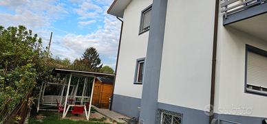 Vendo casa bi familiare, Tricesimo via Giacomo Matteotti 78 pochi minuti dal centro a piedi, zona tranquilla e vicina ai servizi di prima necessità casa indipendente, ma con ingressi e pertinenze separate. Al piano rialzato ingresso, ampio soggiorno, cucina abitabile, terrazzo, ripostiglio, atrio, servizio igienico, vano scale collegamento al piano seminterrato. Al Primo piano tre camere da letto grandi, 2 bagni, 1 alla camera patronale, e disimpegno, ampio terrazzo. Al piano seminterrato ampia autorimessa con possibilità di adibirla a stanza pluriuso, altre tre stanze intonacate e piastrellate, bagno. All'esterno giardino ben curato con gazebo per relax e ricevimenti, casetta in legno per attrezzatura giardinaggio ecc.