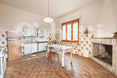 - Al piano terra rialzato ingresso sul disimpegno, soggiorno, cucina abitabile, tre camere, un bagno e due balconate;