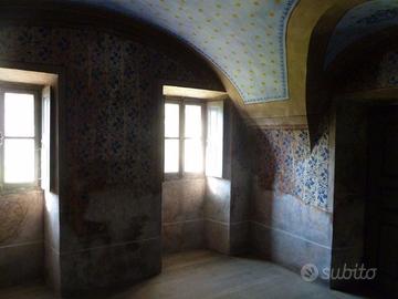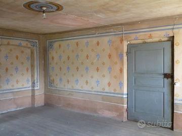 In un grande edificio d'epoca a tre piani fuori terra nella località Quara, proponiamo una signorile abitazione su due piani, con l'ampia corte recintata e portale d'ingresso. Cantine in volta all'interrato, tre vani al pianterreno e vano scale centrale, tre camere e servizio al piano primo. Pareti e soffitti con dipinti e decori d'epoca, grande camino tradizionale, pavimentazioni in pietra e legno. Totali mq. 190.