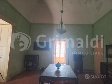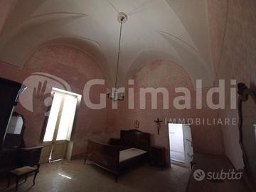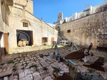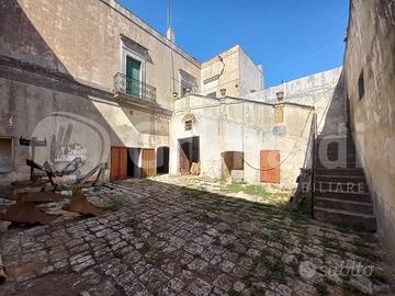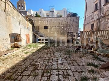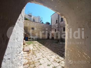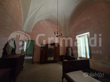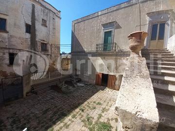 Nel cuore di Gemini, graziosa frazione in espansione di Ugento, proponiamo in vendita palazzo storico ex sede del Vescovado. Il palazzo sito sulla piazza principale del paese si sviluppa su tre livelli. Al piano terra troviamo ampio cortile privato di circa 90 mq con muro di recinzione e comodo portone in ferro battuto. Il cortile permette l'accesso a n° 3 ampie stanze con volte a botte ad uso rimessa auto o vani deposito. La stanza più stretta permette l'accesso a due cantine sottoposte sempre con volte a botte, mentre la cantinola adiacente, al momento non agibile, era ad uso conservazione del vino destinato al Vescovo. Il giardino a staffa di cavallo è sul retro del palazzo, dove troviamo alberi da frutto un'antica cisterna e pozzo. Sull'imponente fronte si apre scala per l'accesso al primo piano in parte in comune con l'ala destra dello stesso. L'ingresso, con volta vela è in comune con l'altra ala. Il salone ampio e imponente con volta a vela permette la perfetta distribuzione degli spazi, fronte abbiamo camera con volta a vela, accanto camera comoda con volta a stella e bagno personale completo con vasca da bagno. Dal salone abbiamo accesso diretto anche in cucina luminosa e spaziosa con volta a stella. E' di pertinenza del palazzo lastricato solare con splendida vista dei dintorni e veranda a livello con forno a legna per cottura del pane, vano ex cucina dei domestici con camino e all'esterno antica piccionaia. All'altezza della veranda si ha splendida vista della chiesa e della piazza principale.