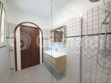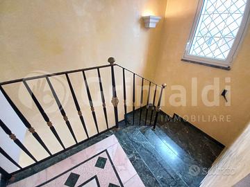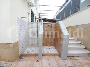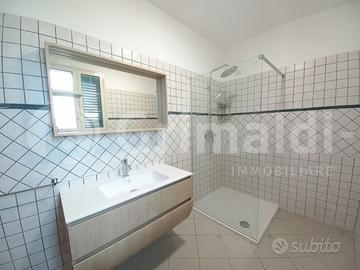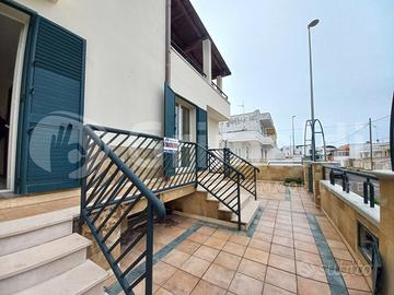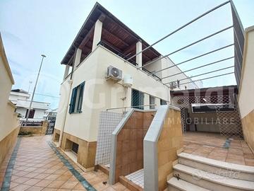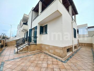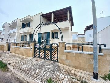 In ottima zona semicentrale a Torre San Giovanni, vicino i vari servizi ed a soli 5 minuti di passeggiata dal lungomare, proponiamo interessante abitazione dalla comoda metratura. La soluzione in posizione angolare e libera sui 3 lati si sviluppa a piano rialzato con verandina d'ingresso e doppio accesso nella zona salotto/sala da pranzo ampia e luminosa. A seguire troviamo cucinotto con accesso diretto alla spaziosa veranda retrostante con portico in legno, 2 comode camere da letto 2 bagni e un servizio con doccia. Nel salone abbiamo scala in marmo che permette l'accesso a primo piano composto da 2 camere da letto ampie e luminose e ampio bagno completo con doccia, inoltre abbiamo grande veranda a livello con angolo dedicato alla cucina, ideale per pranzi e cene con amici e parenti, data l'ampia superficie. Al piano seminterrato si apre garage comodo con 3 vani deposito. E' di pertinenza veranda laterale con doccette esterne e posto auto scoperto, che permette l'accesso da fronte strada alla veranda retrostante, senza dover passare attraverso l'abitazione. L'immobile mai abitato è vivibile da subito.