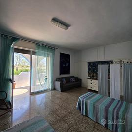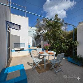 A Torre San Giovanni, bellissima località balneare e turistica del Basso Salento, Frazione del Comune di Ugento, Cittadina riconosciuta per le sue bellezze naturalistiche, storiche ed architettoniche, a soli 130 metri dalla Spiaggia che fronteggia la suggestiva 'Isola di Pazze', proponiamo abitazione indipendente con ampio giardino e terrazzo vista mare. L'abitazione sviluppa una superficie di 100,00 mq distribuiti interamente al Piano Terra, ed è composta da cucina abitabile con camino, soggiorno, due camere da letto, bagno e piccolo bagnetto esterno con accesso indipendente. Completa la proprietà un box auto di 20,00 mq, staccato dal corpo di fabbrica principale, ed un porticato in muratura antistante con degli archi prospicienti la strada. L'abitazione è completamente libera su quattro lati, ha un ampio giardino retrostante piantumanto con alberi da frutto, un'area mattonata laterale ed antistante con un pergolato con tralci di vite. La superficie complessiva del giardino e degli spazi esterni è pari a circa 270,00 mq. Una scala scoperta conduce al lastrico solare, che gode di vista mare piena. L'immobile ha comunque bisogno di lavori di manutenzione ordinaria. Ricade inoltre nella Zona B4 - Edificata (Marina) del Piano Urbanistico Generale del Comune di Ugento, ed il lotto di terreno su cui sorge l'abitazione esprime un Indice di Fabbricabilità Fondiaria pari a 2 mc/mq. Vi è ancora volumetria a disposizione per un ampliamento o sopraelevazione dell'abitazione esistente. L'abitazione è ideale per chi cerca un comodo e grazioso rifugio vicinissimo al mare, con un ampio giardino e vista mare dal terrazzo. Vi è inoltre la possibilità, vista la volumetria ancora disponibile, di realizzare più unità immobiliari. Non perdere l'opportunità di acquistare questa splendida villetta a Torre San Giovanni, un'oasi di pace e serenità nel cuore del Salento. Contattaci per organizzare una visita e lasciati conquistare dal suo fascino unico.