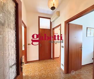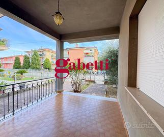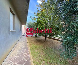 In posizione centrale a Villa Verucchio, proponiamo in esclusiva, in vendita, una villa bifamiliare indipendente, circondata da un giardino piantumato con ulivi. L'accesso alla proprietà avviene tramite un cancello elettrico.