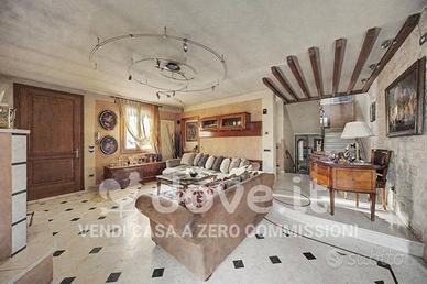 Rif:DV-12604 (127950590) - [Rif. DV-12604] Proponiamo in vendita una casa indipendente di circa 300 mq commerciali, inserita in un contesto residenziale tranquillo e caratterizzata da finiture eleganti e spazi generosi, ideale per chi è alla ricerca di una soluzione abitativa di livello. L'ingresso principale si apre su un ampio disimpegno che distribuisce in modo armonioso gli ambienti del piano terra. La zona giorno si distingue per l'eleganza dei materiali utilizzati, come il pavimento in marmo italiano Pietra di Vicenza, che conferisce raffinatezza e sobrietà agli spazi. Il soggiorno, luminoso e accogliente, è impreziosito da un camino e da una porta scorrevole di alto pregio con inserto in vetro di Murano, elemento distintivo che dona unicità e valore all'ambiente. Le ampie aperture finestrate garantiscono un'ottima illuminazione naturale e permettono l'accesso diretto al giardino. Sul lato opposto si sviluppa la cucina abitabile, spaziosa e completamente accessoriata, collegata alla sala da pranzo, ideale per momenti conviviali. Il piano terra è completato da un bagno con antibagno e dalla presenza del box auto, che aggiunge praticità alla soluzione. Attraverso una scala interna si accede al primo piano, dedicato alla zona notte. Qui un corridoio disimpegna quattro camere da letto, tra cui una matrimoniale e tre singole, tutte ben proporzionate e luminose, oltre a un bagno finestrato dotato di vasca, funzionale per le esigenze della famiglia. Il piano seminterrato rappresenta un importante valore aggiunto, ospitando una taverna con angolo cottura, perfetta come spazio conviviale o area relax, oltre a un bagno, locale tecnico e lavanderia, garantendo ulteriore funzionalità agli spazi. Il livello mansardato completa la proprietà con un ampio ambiente open space, versatile e facilmente adattabile come studio, area hobby o ulteriore zona notte. All'esterno - Classe: G - IPE: 175.00 kWh/mq anno