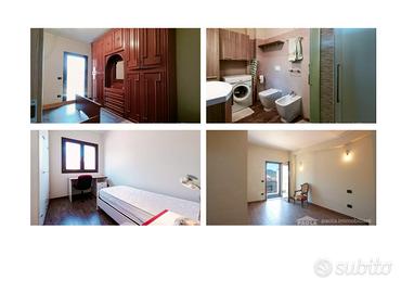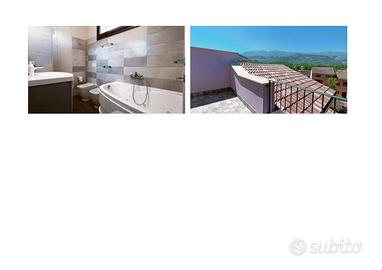Piano terra: accesso indipendente con corte privata, ingresso, soggiorno (con ampia finestra ad ante scorrevoli), un bagno, un sottoscala con l'autoclave, cucina abitabile ed arredata con mobili nuovi di qualità. Piano primo: camera da letto matrimoniale con balcone, bagno, camera da letto singola, w.c. di servizio con pilozzo. Piano secondo: camera da letto matrimoniale, bagno con vasca idromassaggio, terrazzo panoramico e riservato. L'edificio ha le seguenti dotazioni: 1) impianto di allarme a 3 livelli (sensori agli infissi, sensori di movimento alle finestre e sensori di movimento interni). 2) cablaggio wi-fi interno. 3) tapparelle in alluminio coibentato comandate sia localmente che con pulsanti centralizzati ad ogni piano e generale (app vimar). 4) riscaldamento a pavimento con impianto Bosch Cerapur Solar System Incasso a 3 zone indipendenti e 2 pannelli solari Bosch; 5) Videocitofono sui tre livelli con comandi apertura cancello esterno e portone. 6) autoclave con serbatoio 500 l e pompa ad inverter. 7) cappotto termico, cassonetti monoblocco ALPAC, finestre in PVC effetto legno (vetro camera baso emissivo con distanziatore caldo). 8) vasca idromassaggio Grandform Life, 2 box doccia 80x120 con cristalli satinati Samo, sanitari filo muro e wc senza brida con sedile a smorzamento; 9) Condizionatore a pompa di calore estivo/invernale Mitsubishi: unità esterna e 2 split interni. 10) Arredo nuovo per bagni e cucina (su misura con piano cucina in quarzo). 11) Porte interne Cocif, serie Halley mod. Andromeda, essenza Xilo Flamed White, design Lissoni. 12) Impianto Fotovoltaico 5 kWp con accumulo 16 kWh; impianto elettrico serie Arché Vimar, antenna tv e sat.
