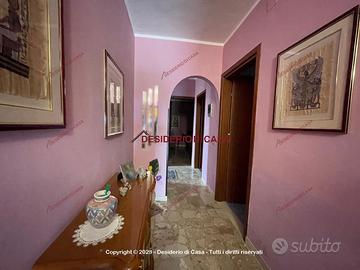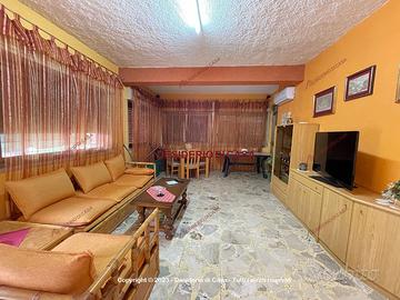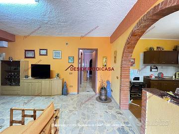 L'immobile disposto su due livelli (terra e primo piano) presenta quadrupla esposizione con 3.000 mq di terreno, 300 di terrazzo ed internamente è composto al piano terra da ingresso, soggiorno, due cucina abitabili, tre camere da letto, cameretta, lavanderia/ripostiglio e tre bagni; al piano superiore da cucina abitabile, soggiorno, camera da letto, cameretta e bagno con vasca.