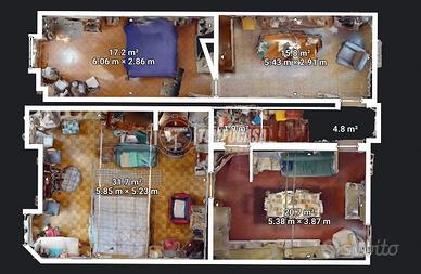 Al piano primo troviamo cucina con terrazza, sala, bagno e due vani; infine al piano secondo, bagno .