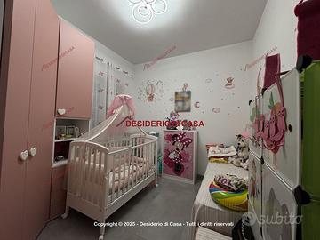 Al piano terra troviamo una zona giorno ampia e funzionale con cucina/soggiorno, salone, camera da letto, cameretta e due bagni, uno con doccia e uno con vasca.