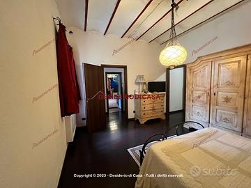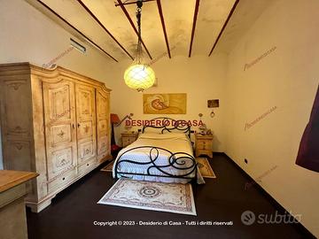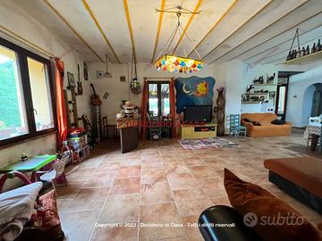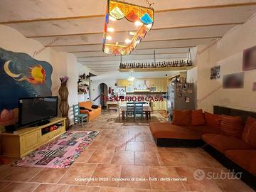 L'immobile, parzialmente ristrutturato, presenta quadrupla esposizione con 2.000 mq di terreno, veranda, ampi spazi esterni ed una piscina interrata; internamente è composto al primo livello da ingresso, cucina/soggiorno, due camere da letto, una altra stanza ed un bagno; al piano superiore da due ampie stanze ed un ripostiglio.
