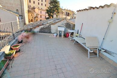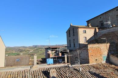 L'unità immobiliare è così composta: al piano seminterrato troviamo comoda tavernetta con affaccio su finestra a bocca di lupo, ingresso principale su soggiorno e relativo cucinino al piano terra. Tramite scala interna al primo piano troviamo ampia camera da letto ed un bagno con vasca e finestra. Al secondo piano seconda camera finestrata con quattro lati liberi, collegati da una comoda scala si arriva fino al terrazzo superiore di 20 mq con affacci liberi sul paese alto e sui Sibillini.