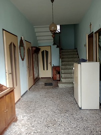 Casa abitabile di mq. 180 in centro paese su 2 livelli con terreno e rustico. Ampio parcheggio con giardino e orto. Box privato. Comodo ai servizi.