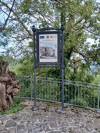 Caratteristici muri in pietra e piacevole vista sulle colline e sui vigneti dal belvedere adiacente.