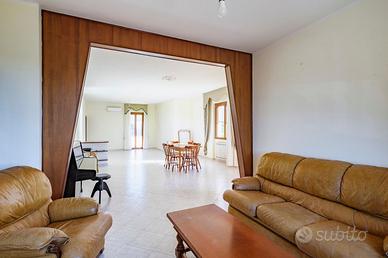 In una zona tranquilla e riservata, porzione di splendida villa bifamiliare con ampi spazi interni ed esterni, perfetta per chi cerca una casa elegante e funzionale. Disposta su due livelli, l'immobile è caratterizzato da una comoda suddivisione degli spazi, che la rende ideale per famiglie numerose o per chi desidera importanti ambienti da personalizzare. Caratteristiche principali: Piano Terra: Un'accogliente zona living, spaziosa e luminosa, con adiacente la cucina. La zona notte comprende 4 camere da letto (3 camere matrimoniali, una camera singola) 2 bagni e un pratico ripostiglio. Soffitta: Collegata al piano superiore, tramite scala retrattile, che copre tutta la superficie della casa, perfetta per essere utilizzata in vari modi. Taverna e garage: Al piano seminterrato, una grande taverna di 110 mq con ampia sala, camera e servizio, offre un ampio spazio da adibire a sala giochi, area fitness o a seconda delle necessità, mentre il garage di 50 mq garantisce una comoda zona di sosta per i veicoli. Esterni: La proprietà vanta un ampio giardino di circa 2000 mq. completamente recintato, ideale per momenti di relax all'aperto o per organizzare pranzi e cene in famiglia. La villa è inoltre arricchita da ampie verande che ampliano la vivibilità esterna. Questa villa rappresenta la soluzione perfetta per chi cerca ampi spazi, comodità e un'ottima qualità della vita, pur mantenendo una posizione comoda e ben servita, a pochi passi dal centro. Non perdere l'occasione di visitare questa splendida proprietà!