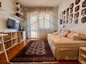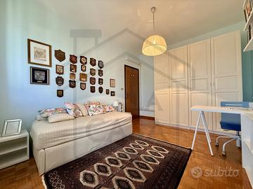 Al piano superiore si sviluppa la zona notte, composta da tre camere matrimoniali e una camera singola, perfetta per una famiglia numerosa o per chi desidera ambienti flessibili, da adattare in base alle proprie esigenze. Due camere accedono al terrazzo che percorre l'intera facciata, regalando luminosità e piacevoli scorci sul quartiere e il verde circostante.