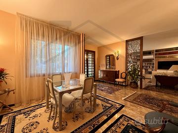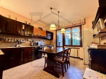 L'ingresso si apre su una zona giorno ampia e luminosa, dove il salone con camino, impreziosito dall'importante pavimento in marmo, e la sala da pranzo, creano un'atmosfera accogliente e raffinata. La cucina separata e abitabile, dotata di comodo ripostiglio/dispensa, si affaccia sullo spazio esterno piastrellato, ideale per organizzare cene all'aperto, barbecue e momenti di relax circondati dal verde del giardino.