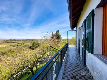 Tempocasa Ovada è lieta di proporti questa casa semi indipendente libera su tre lati nel comune di Trisobbio, in contesto tranquillo e immerso nel verde, con bellissima vista panoramica sulle colline del Monferrato e sulle Alpi. L'immobile è così composto: primo piano con ingresso su soggiorno, cucina, due camere da letto, bagno e ampio balcone panoramico. Piano terra con taverna provvista di angolo cottura, bagno, camera e cantina. Riscaldamento tramite caminetto, stufa a legna o caldaia a gpl/gasolio. Accanto alla casa troviamo un box auto ed un ripostiglio, oltre ad un forno a legna. Completano la proprietà un sottotetto e poco più di un ettaro di terreni in parte coltivati a frutteto e in parte boschivi, oltre a 1000 mq di giardino pertinenziale che circonda tutta la casa. Ideale sia come prima che come seconda casa.