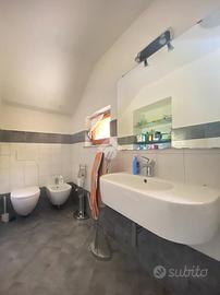 Salendo al primo piano, troviamo due camere da letto, di cui una matrimoniale con ripostiglio e una camera media, e un ulteriore bagno, sempre finestrato con doccia.