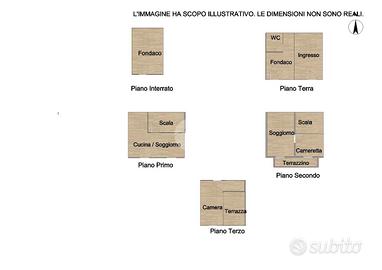 Al piano primo troviamo una spaziosa cucina, mentre al piano secondo sono presenti un soggiorno e una cameretta, entrambi con accesso al balconcino.