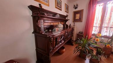 Salendo tramite scala esterna si accede al primo piano ove presente l'altro appartamento composto da una cucina abitabile con annesso soggiorno, due camere da letto di cui una con ampia cabina armadio e bagno finestrato.