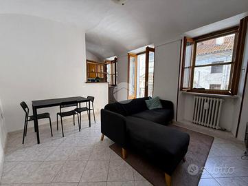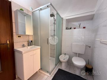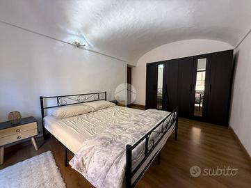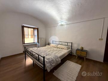 Al primo piano, raggiungibile tramite scala interna, si trova un bilocale in buono stato manutentivo, frutto di un intervento di revisione: qui troviamo una luminosa zona giorno con cucina a vista e balcone, una spaziosa camera da letto e un bagno finestrato con doccia.
