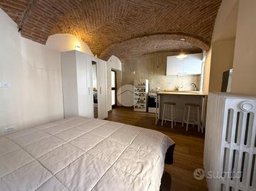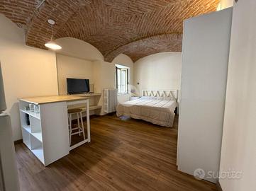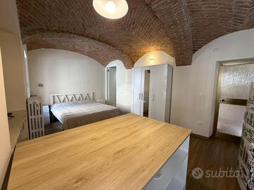 Il piano terra, completamente ristrutturato nel 2024, ospita un monolocale caratterizzato da suggestive volte in mattoni a vista e da un bagno cieco con doccia.