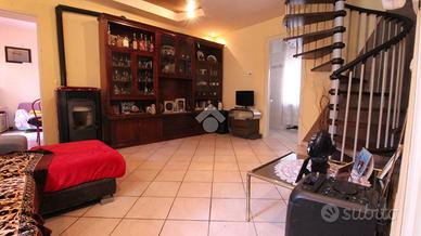 In centro paese, casa semindipendente disposta su due livelli. Il piano terra è composto da cucina abitabile, separata dal soggiorno. Completa il piano una camera da letto e il bagno con vasca e finestra. Invece, il piano primo raggiungibile mediante scala esterna ed interna, è costituito dalla zona notte. Quest'ultima conta di due camere da letto, un soggiorno ed un bagno. Inoltre, è presente un balcone che si estende lungo la facciata della casa. Il riscaldamento è autonomo a metano mediante caldaia a condensazione sostituita circa 15 anni fa ed è presente anche la canna fumaria. Gli infissi sono in alluminio e alcuni con vetri doppi. A corredo della proprietà vi è un'area cortilizia, in parte utilizzata ad orto per una metratura di 127 mq circa ed un ripostiglio esterno. L'accesso alla proprietà si ha mediante un cancello privato. Il tetto si presenta in buone condizioni di manutenzione, revisionato circa 12 anni fa.