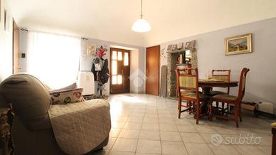 In centro paese, casa semindipendente disposta su tre livelli. Il piano terra ospita la zona giorno, composta da spazioso soggiorno impreziosito da un'elegante stufa a pellet separata dalla cucina abitabile. Completano il piano un locale utilizzato come camera da letto ed un bagno con doccia e finestra. Invece, il piano primo attualmente accessibile mediante una scala esterna, è costituito da un ampio locale utilizzato come cucina/soggiorno impreziosito da un elegante camino in mattoni, separato dalle due camere da letto e dal bagno con doccia e finestra. Inoltre, è presente un balcone che si estende lungo la facciata della casa. Inoltre, vi è anche il locale sottotetto suddiviso in più locali. Il riscaldamento è autonomo ed è dato dai termoconvettori a metano, da una a pellet e da un camino a legna ventilato. Gli infissi sono in parte dotati di doppi vetri. A corredo della proprietà vi è un cortile privato e alcuni bassi fabbricati, uno dei quali utilizzato come dehors con tavolo in pietra e forno per le pizze.