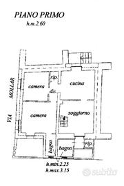 L'immobile, ristrutturato tra la fine degli anni 90 e inizio anni 2000, è composto da ingresso sulla cucina abitabile, soggiorno, disimpegno, camera da letto matrimoniale con bagno privato, cameretta, ripostiglio ed un secondo bagno. Tramite la scala in legno posta nel soggiorno si accede al locale sottotetto agibile ma non abitabile. Completano la proprietà il terrazzo, ed il cortile privato con diritto di passaggio pedonale del vicino.