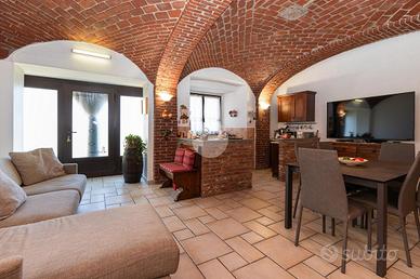 Posizionata in zona Campagnola, comoda alla nuova variante che porta verso Collegno e a pochi minuti dal centro paese, servito dalla stazione e da qualsiasi altro servizio. La soluzione, libera su tre lati, nasce nei primi anni del Novecento ma negli anni Ottanta divenne oggetto di un recupero edilizio che ne ha preservato la storicità andando però a migliorare l'aspetto estetico e anche quello tecnico edilizio. La parte abitativa si trova al primo piano, con una cucina ampia con sfogo su un terrazzo esposto a Sud-Ovest. Mentre nella zona notte troviamo due camere matrimoniali di circa 25 mq ciascuna. Il bagno è stato appena ristrutturato con grande accuratezza e con materiali di prima scelta. Al piano terra troviamo due locali adibiti a tavernetta, caratterizzati da delle volte con mattoni a vista, che la rendono accogliente e suggestiva. Qui è presente un bagno appena ristrutturato, finestrato e con vasca. Completa la proprietà una tettoia di circa 100 mq che potrà essere chiusa e utilizzata eventualmente come depandance, una cantina interrata ed il box auto.