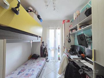 L'ingresso dall'area esterna di proprietà avviene sul soggiorno living che ospita la cucina angolare a vista. Le sue lunghe pareti lineari possono ospitare cucine attrezzate su entrambe. Valorizzato dalla parete rifinita in materiale pietrizio, il soggiorno è costeggiato dal corridoio che porta alla zona notte composta da due camere da letto. Quella più grande è adiacente al soggiorno, mentre quella più piccola al servizio igienico. Nel lato interno, accessibile da entrambe le camere, è presente il grande terrazzo. Pur avendo dimensioni interessanti, offre molta privacy ed ospita attualmente anche la zona lavanderia. Ideale per passare del tempo all'aperto, quest'ultimo possiede una tenda a rullo che permette di coprirlo per quasi tutta la sua dimensione, ombreggiando gli spazi. Il bagno possiede la ventilazione e, al suo interno e' stata posata la doccia angolare. Il piano mansardato copre la metratura dell'appartamento e, al momento è accessibile dal balcone di ingresso. La doppia esposizione è garantita dagli Infissi in legno, già con il doppio vetro. La pavimentazione della zona giorno, così come quella della zona notte, sono già state sostituite nella ristrutturazione effettuata da una decina di anni. Quest'ultima ha visto anche la ristrutturazione del bagno e degli impianti. Fiore all'occhiello e praticamente introvabile, è il cortile di proprietà, accessibile dal carraio scorrevole che è già stato predisposto per la meccanizzazione. Comodo per poter posteggiare anche 4 auto, quest'ultimo permette di essere utilizzato per ogni necessità. La sua copertura, che prosegue su tutta la proprietà, è stata appena rifatta. Il recente rifacimento del tetto ha permesso anche una attenta impermeabilizzazione. A completare la proprietà, con duplice accesso, è la cantina al piano terreno. Questa, attraverso qualche scalino, permette di raggiungere un locale rifinito con la volta di mattoni a vista. Ubicato nel pieno centro di Alpignano, l'immobile si presenta perfetto pe...