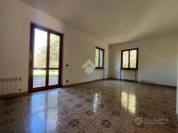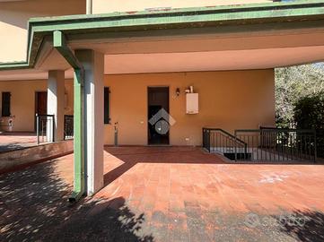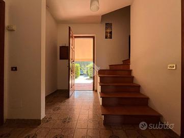 L'ingresso è indipendente sulla loggia pranzabile, dal quale si accede al pianterreno dove troviamo la zona giorno, composta da una cucina ed uno spazioso soggiorno con camino; da qui, delle portefinestre si aprono sull'ampio giardino privato.